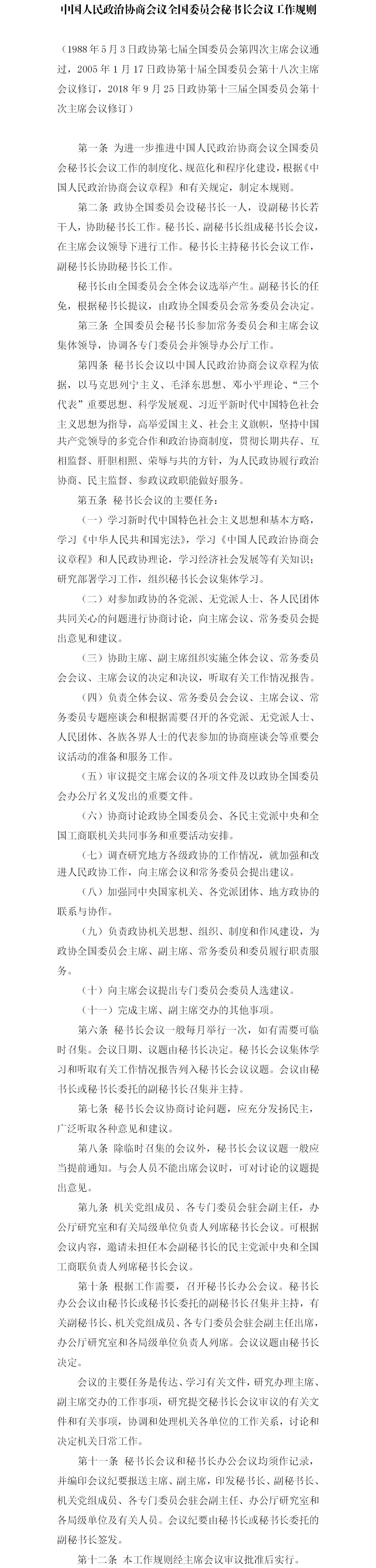 中国人民政治协商会议全国委员会秘书长会议工作规则