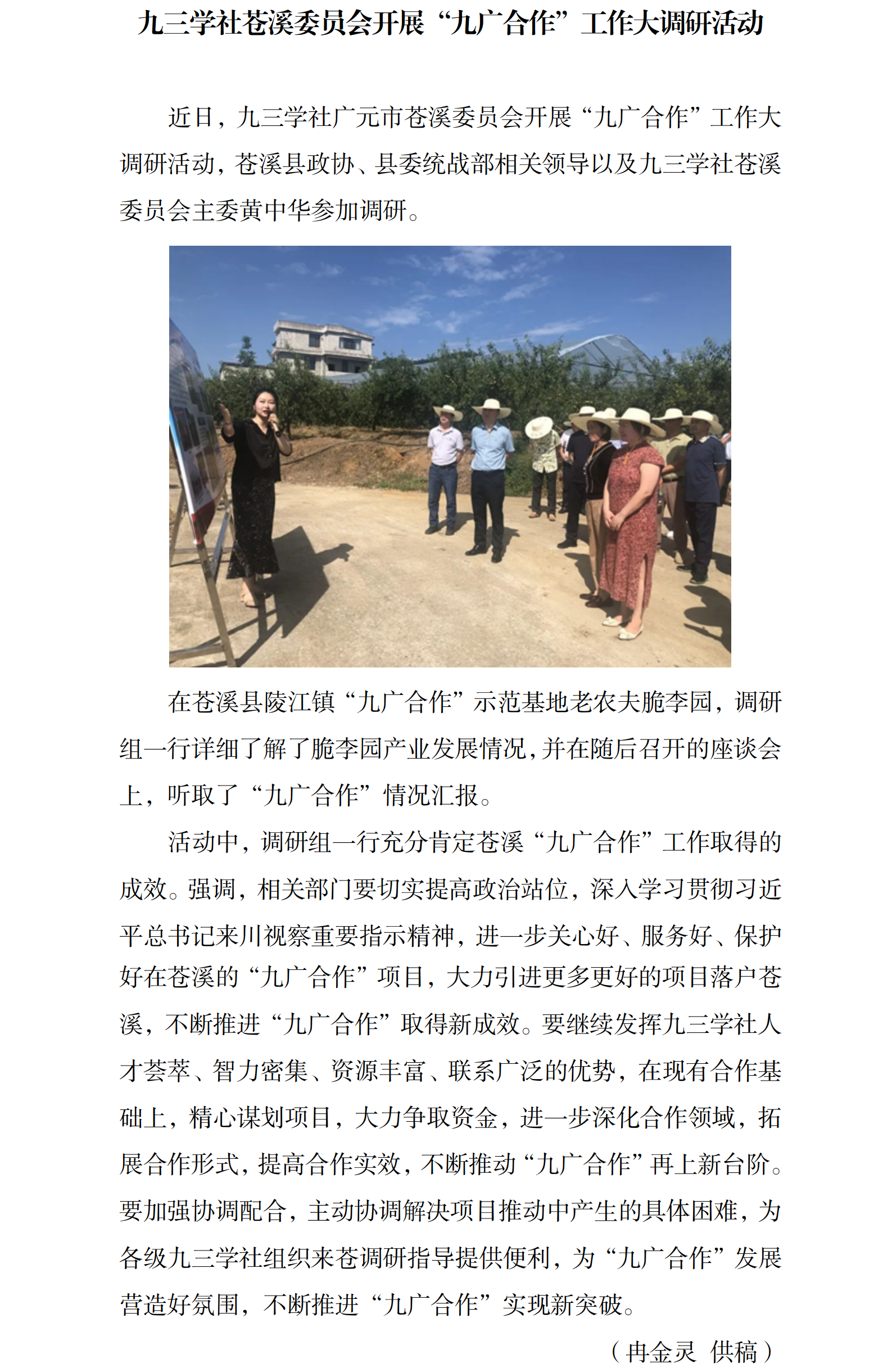 九三学社苍溪委员会开展“九广合作”工作大调研活动