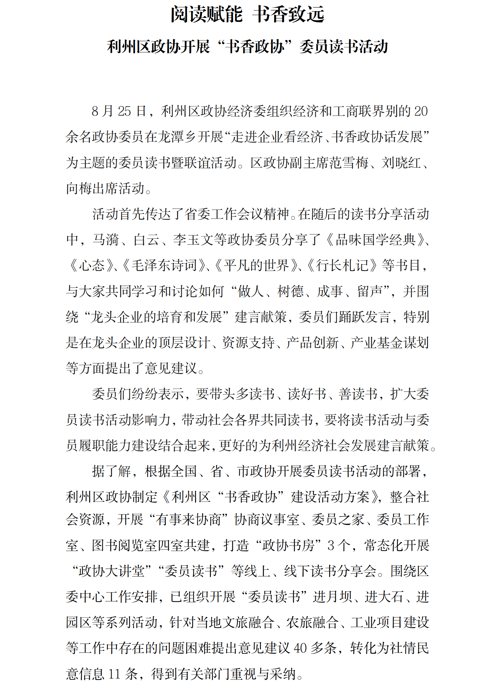 利州区政协开展“书香政协”读书活动