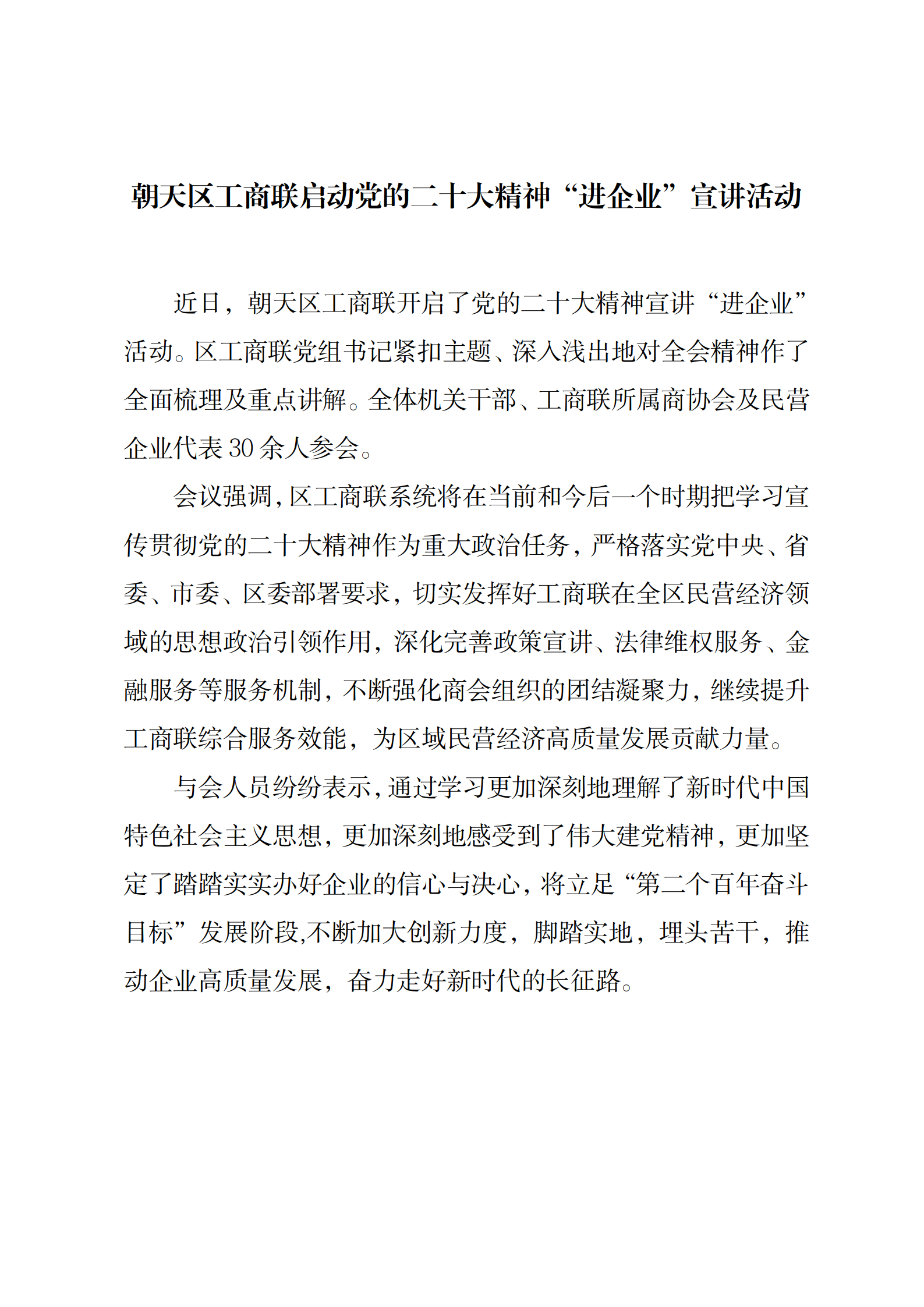 朝天区工商联启动党的二十大精神“进企业”宣讲活动