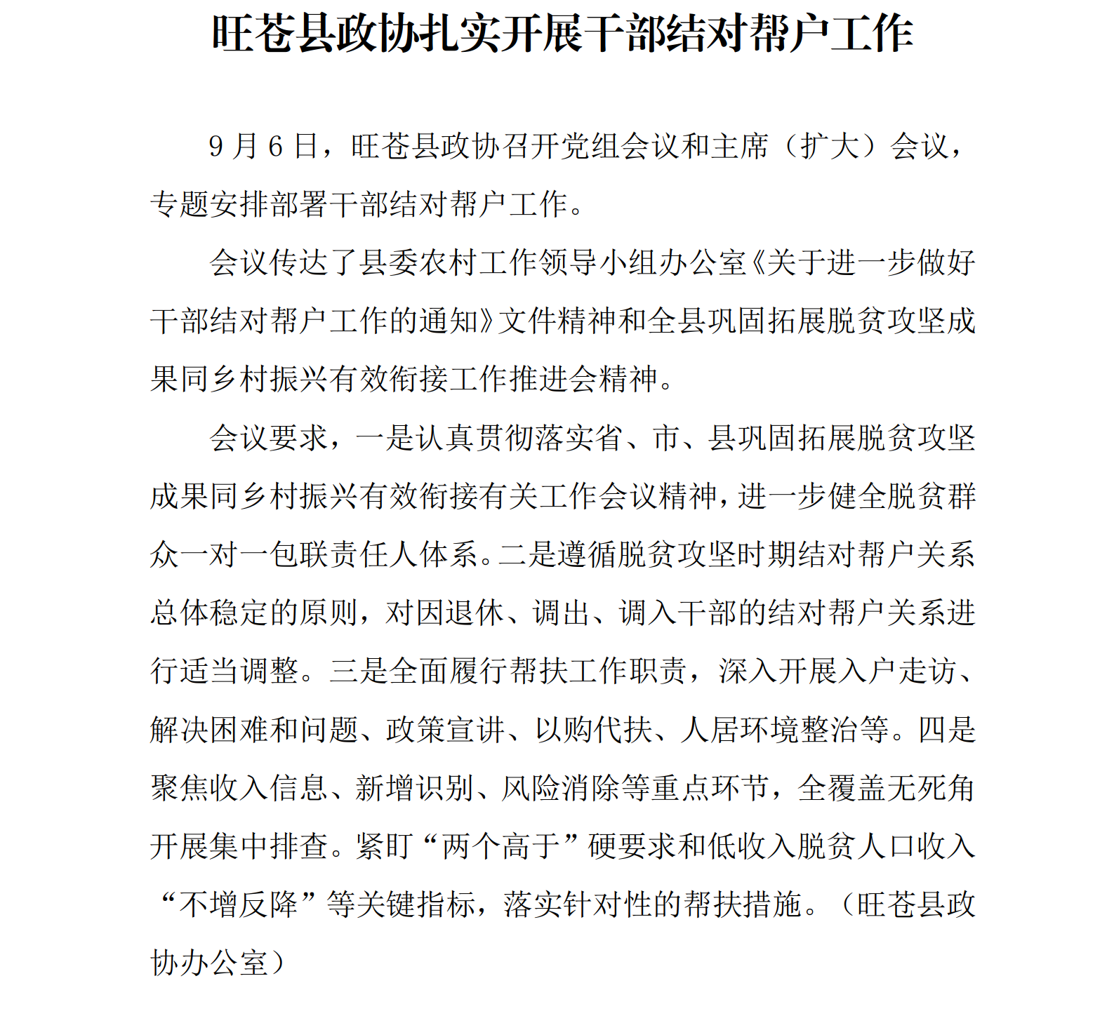 旺苍县政协扎实开展干部结对帮户工作