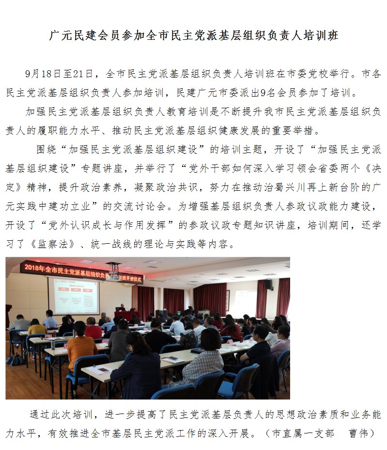 广元民建会员参加全市民主党派基层组织负责人培训班