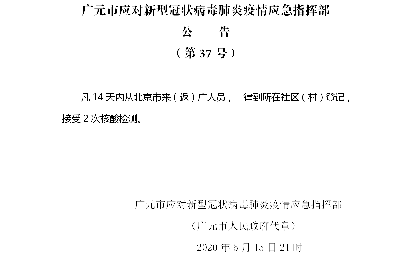 广元市应对新型冠状病毒肺炎疫情应急指挥部公告(第37号)