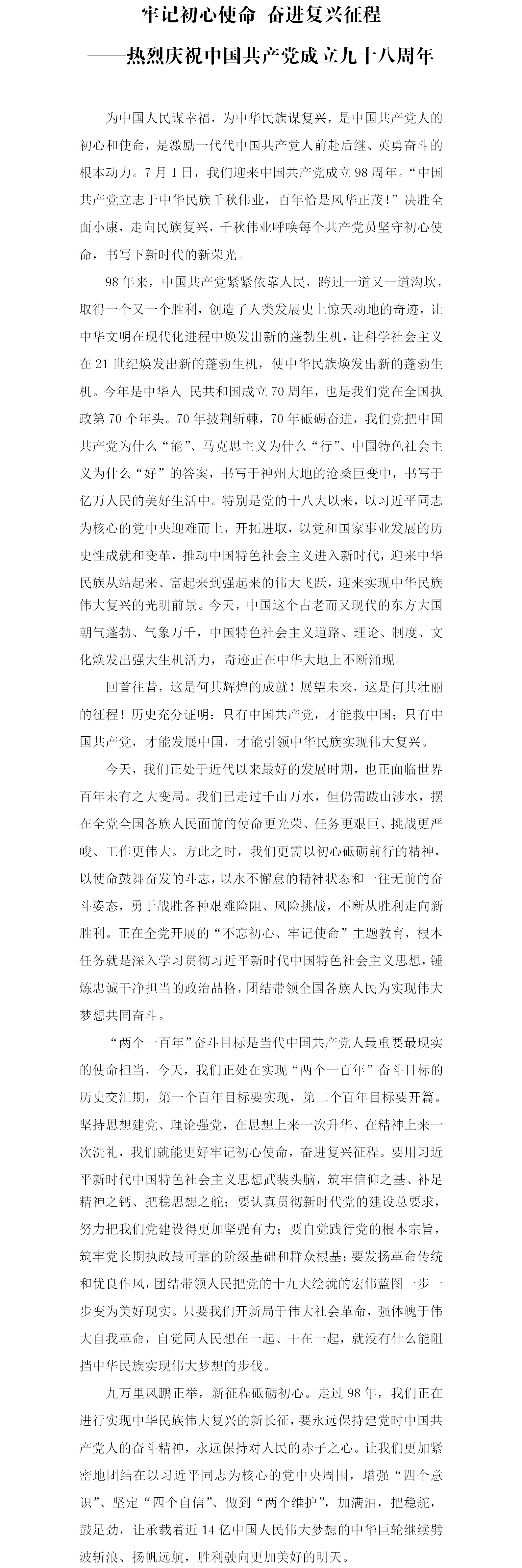 牢记初心使命 奋进复兴征程