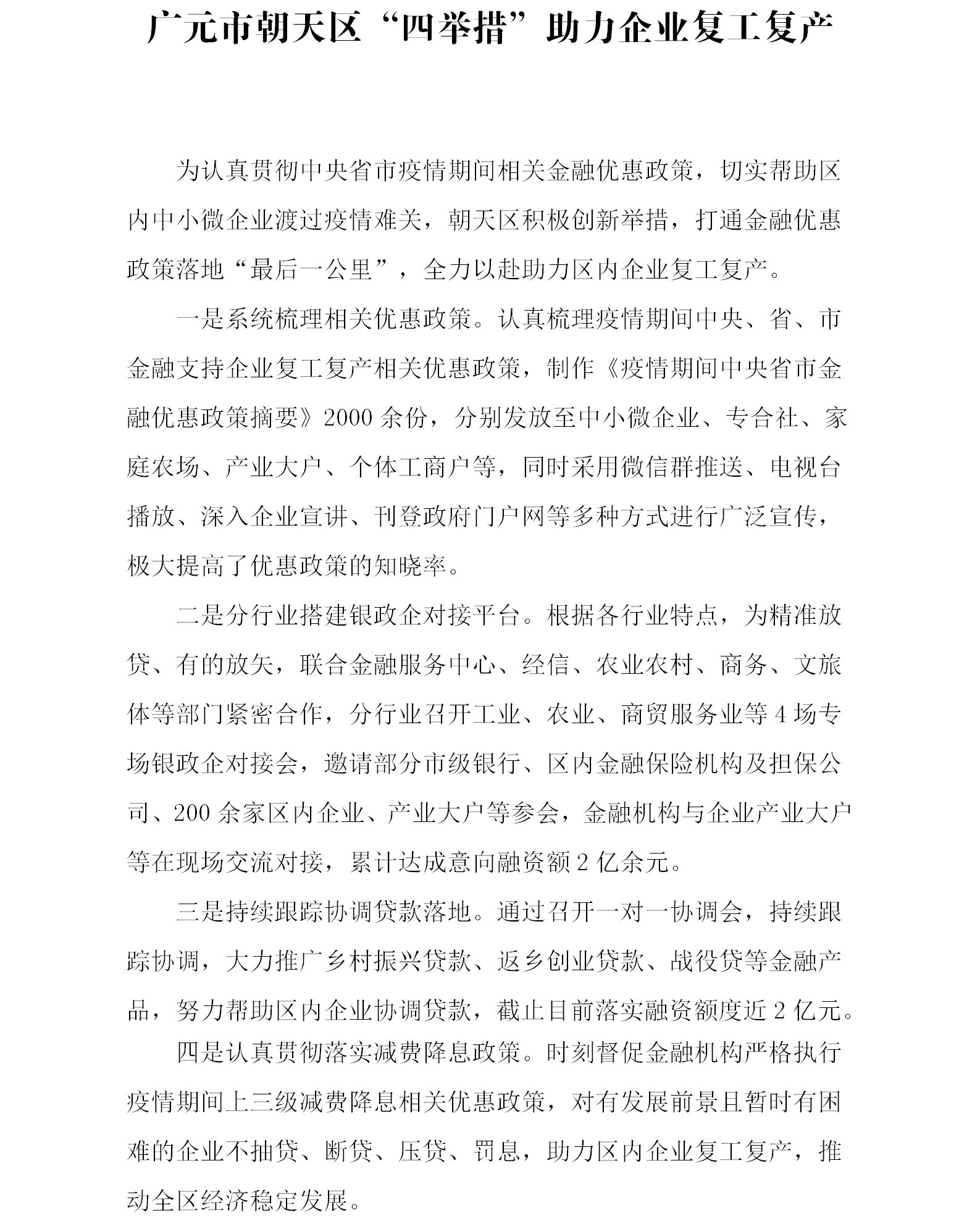 广元市朝天区“四举措”助力企业复工复产