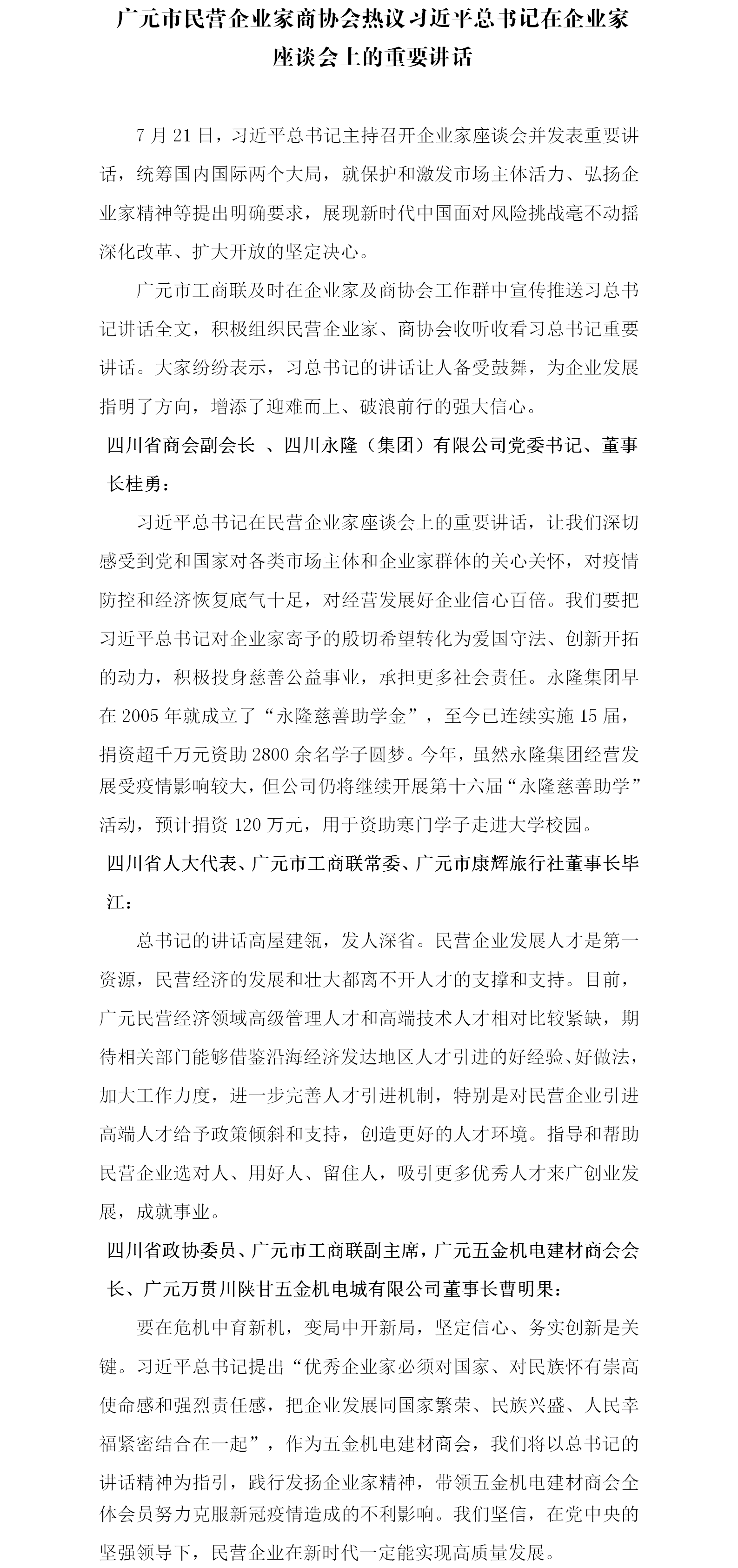 广元市民营企业家商协会热议习近平总书记在企业家座谈会上的重要讲话