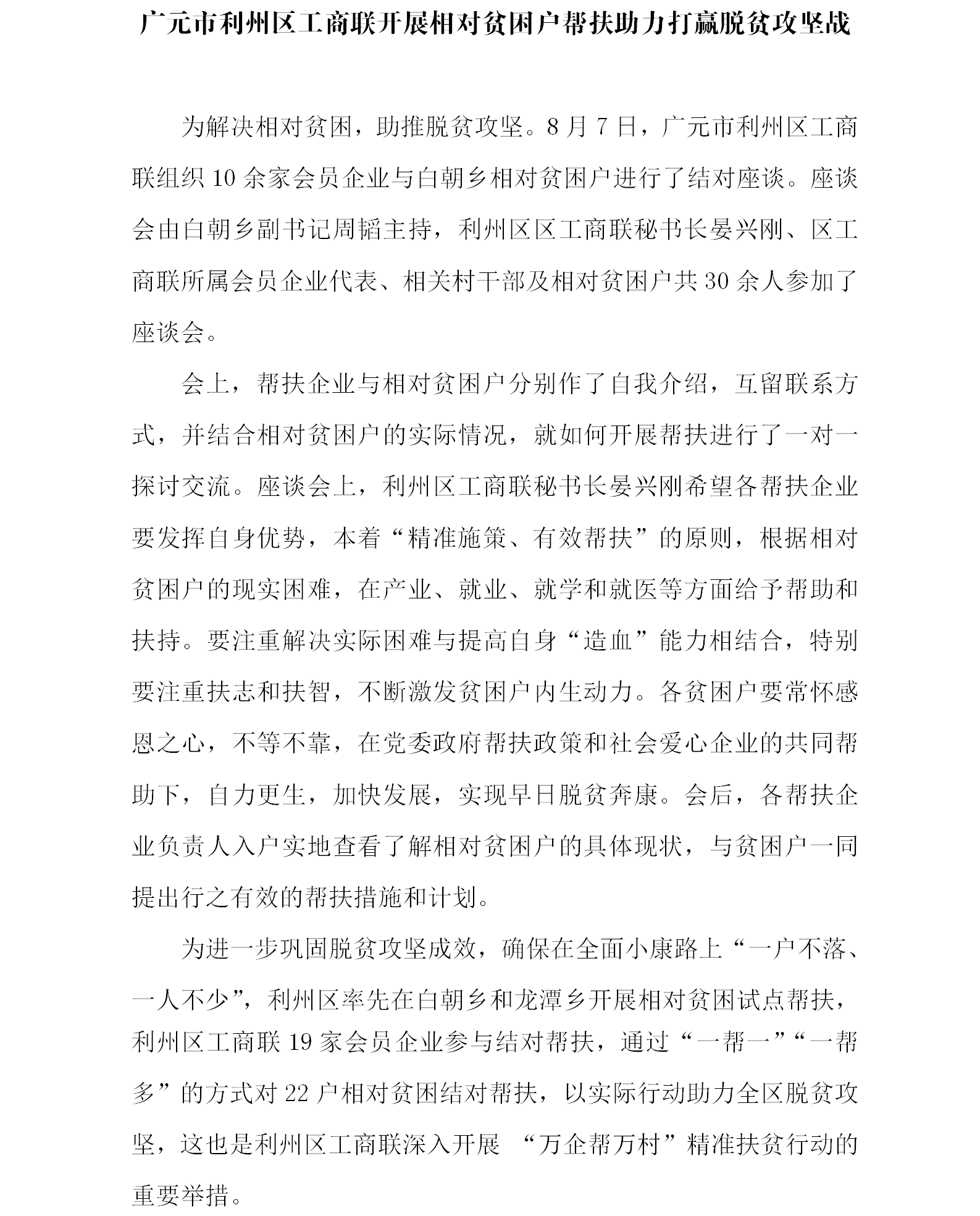广元市利州区工商联开展相对贫困户帮扶助力打赢脱贫攻坚战